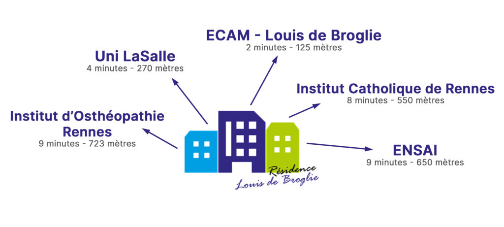 Au cœur du Campus de Ker Lann, la Résidence Louis de Broglie (250 logements) est idéalement située pour se rendre à pied dans les établissements et accéder aux transports en commun.